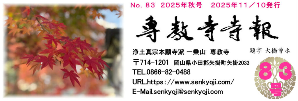 2025年秋号 専教寺寺報83号PDF(9.1MB)のダウンロードはこちらから